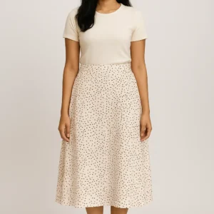 Rok Midi A-Line Krem Motif Polkadot Mini