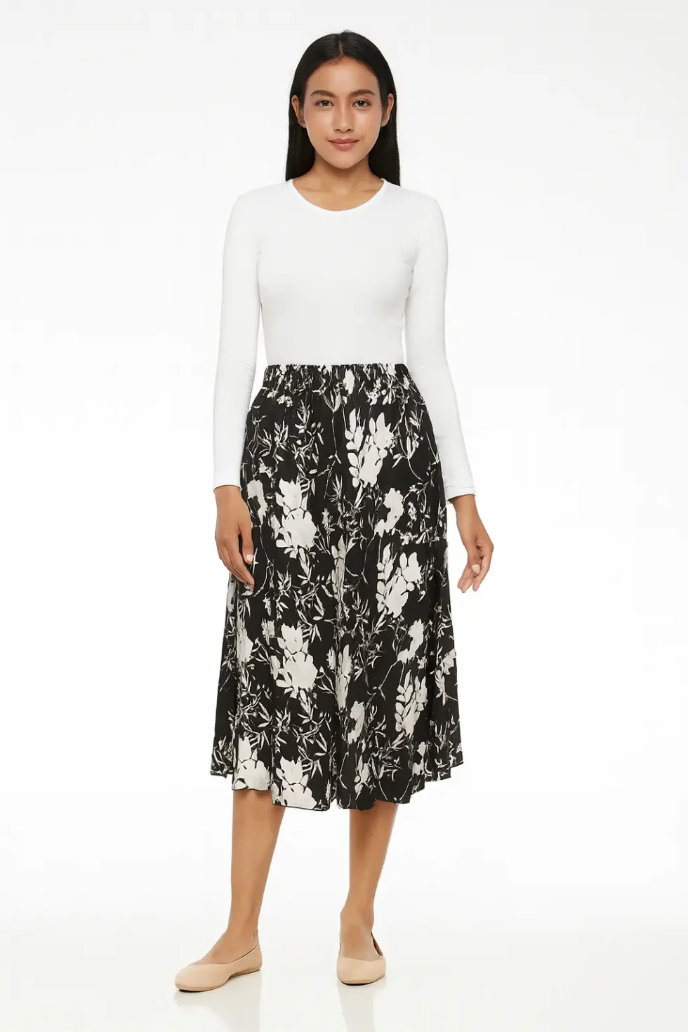 Be the first to review “Black & White Botanical Print High-Waist Midi Skirt”