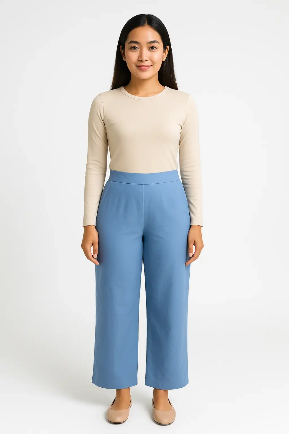 Celana Biru Muda Lurus Elegan