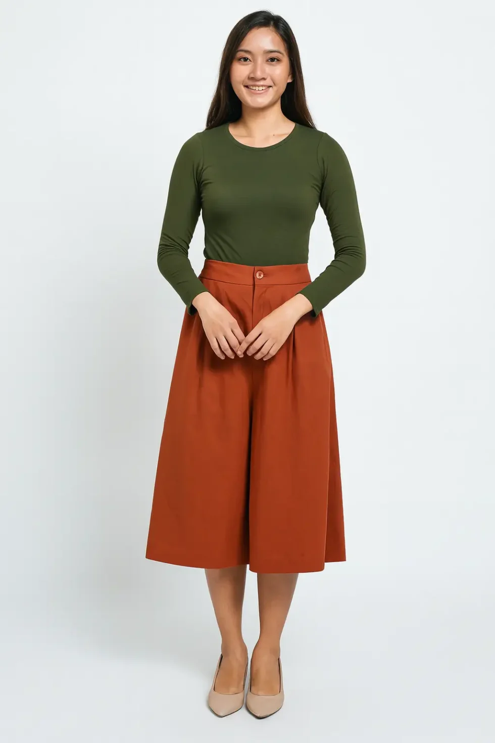 Celana Kulot Midi Warna Terracotta
