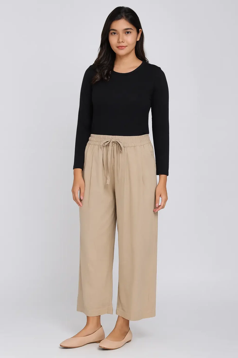 Celana Kulot Palazzo Pinggang Karet Tali Serut