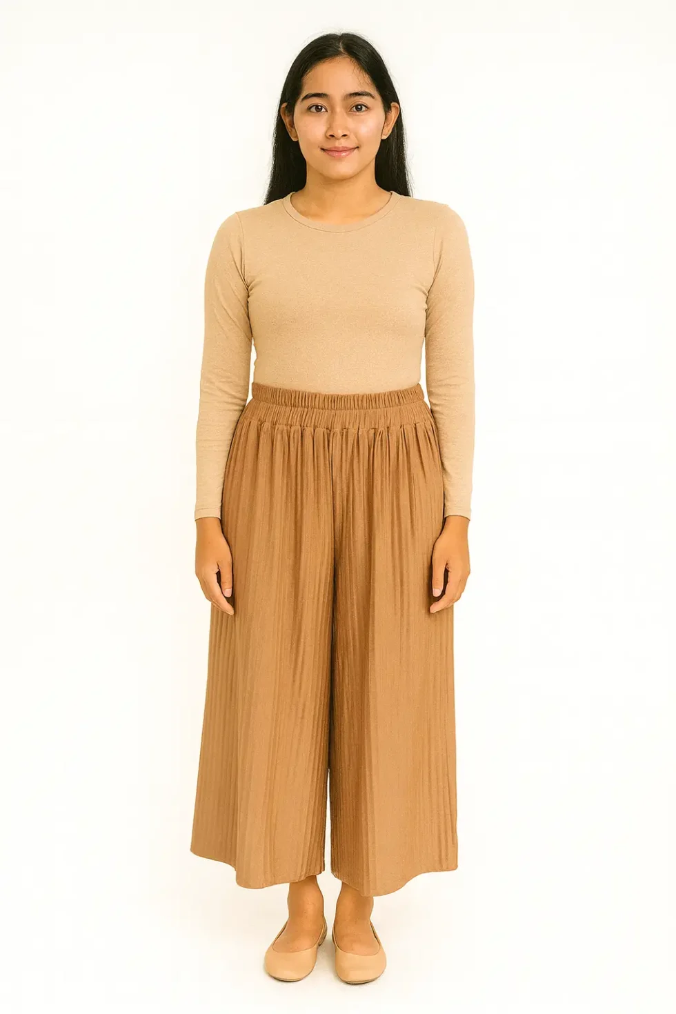 Celana Kulot Plisket Pinggang Karet Cokelat