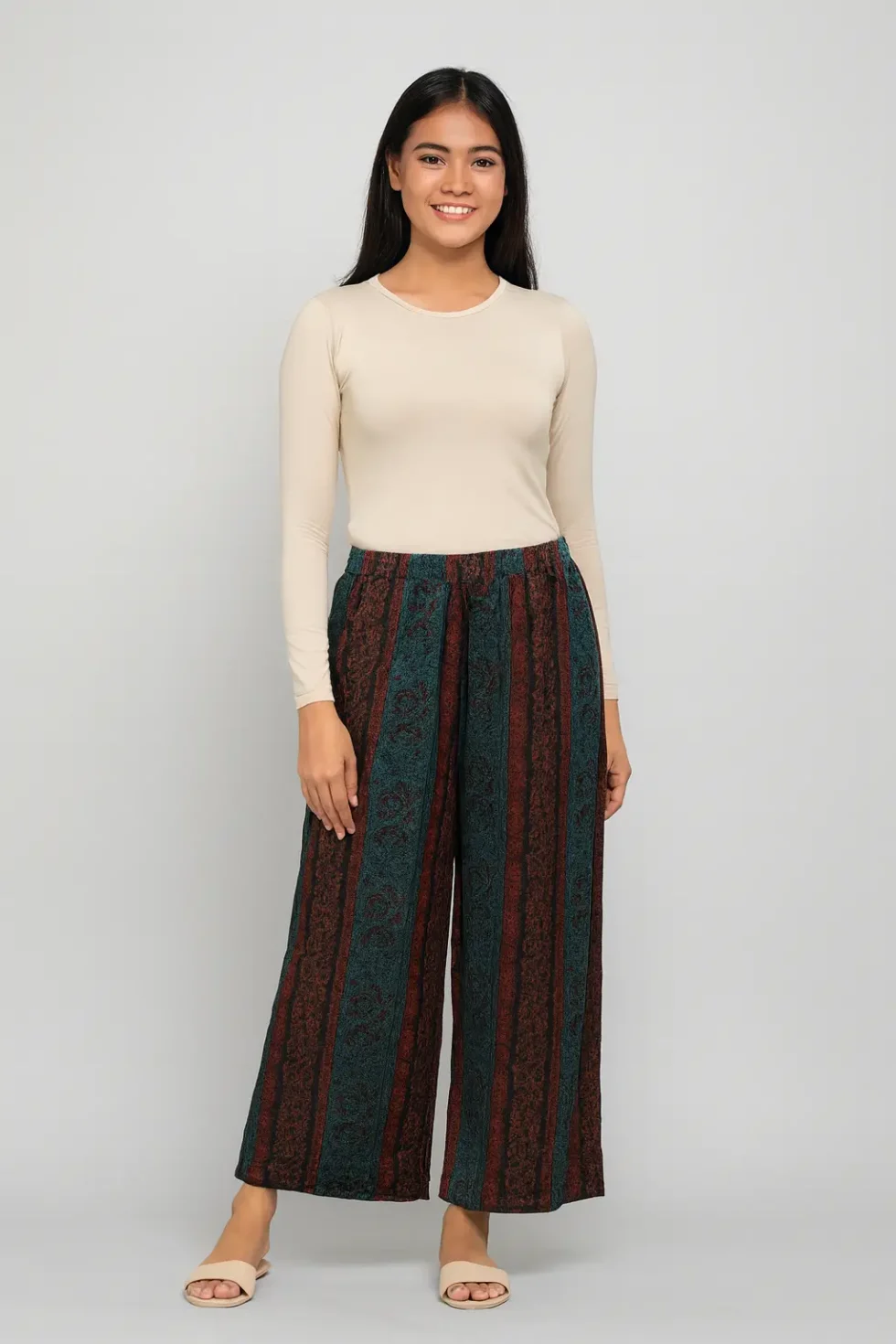 Celana Kulot Motif Etnik Bergaris Toska-Marun