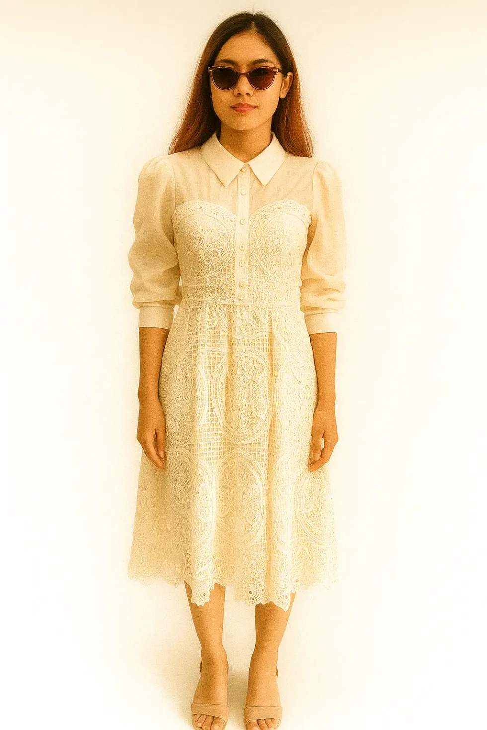 Be the first to review “Dress Midi Cream Brokat Motif Vintage”