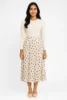 Rok Midi A-line Motif Abstrak Warna Putih Gading