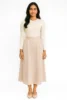 Rok Midi A-line Motif Bunga Kecil Warna Nude Beige