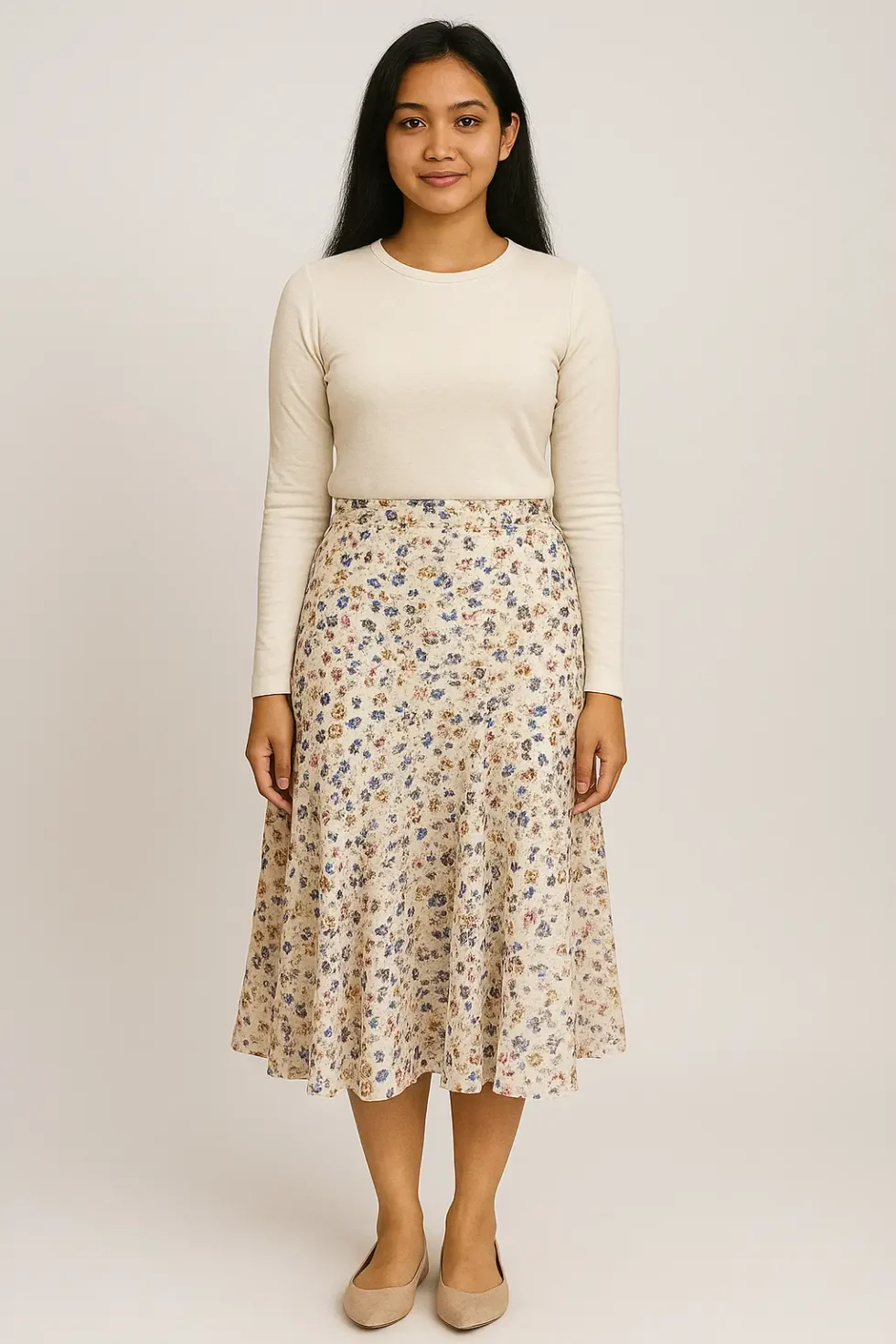 Be the first to review “Rok Midi Cream Motif Bunga Kecil”