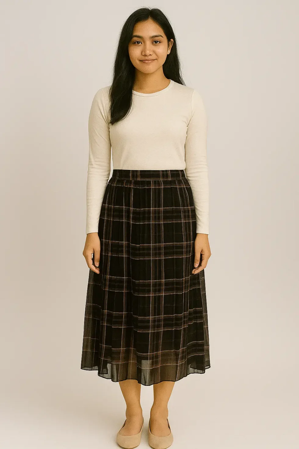 Be the first to review “Rok Midi Plisket Hitam Kotak-Kotak”