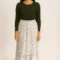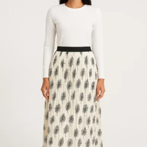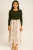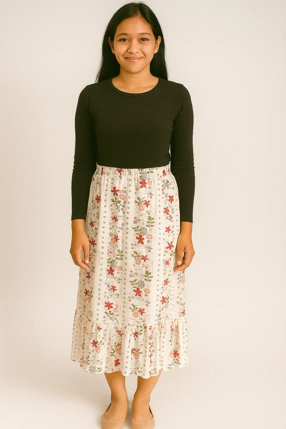 Rok Panjang Putih Ruffle Motif Bunga Garis