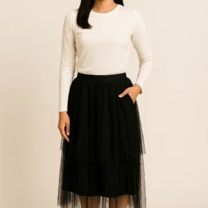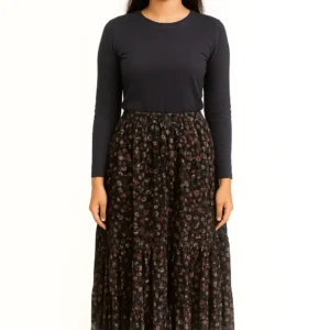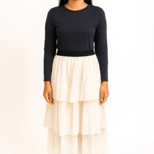Be the first to review “Rok Panjang Putih Ruffle Motif Bunga Garis”