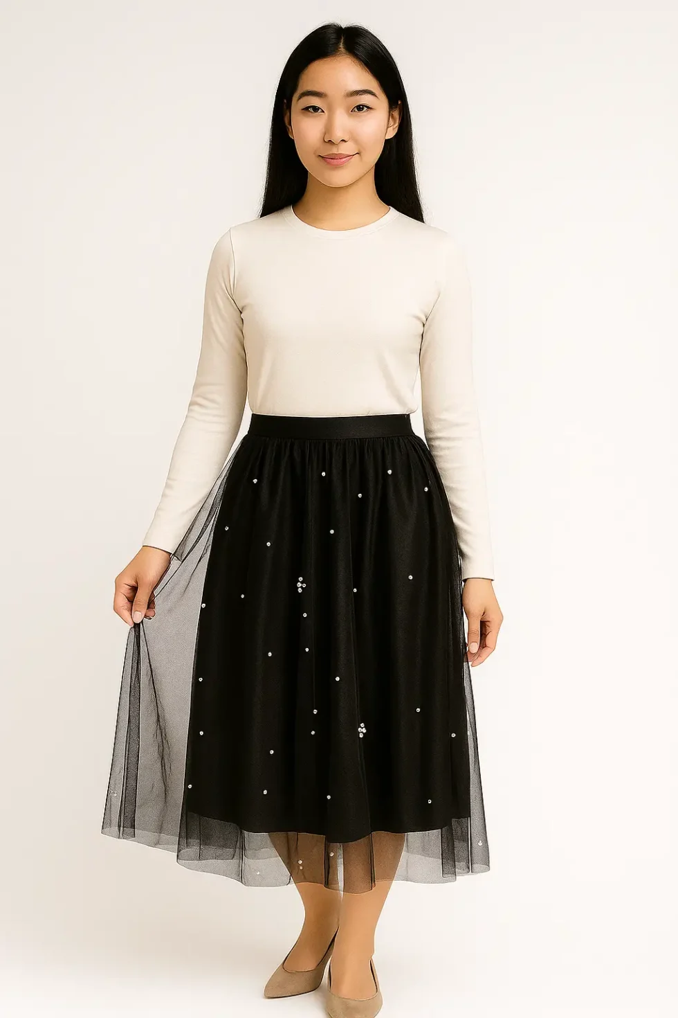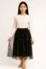 Rok Tulle Hitam Mutiara Bunga Midi