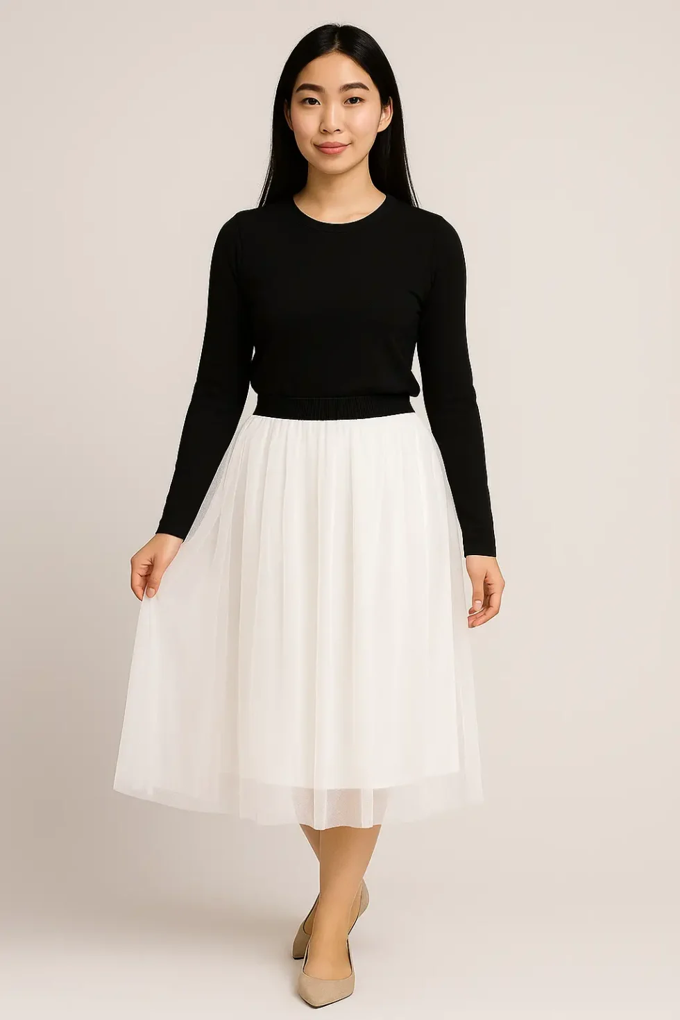 Be the first to review “Rok Tulle Putih Pinggang Hitam”