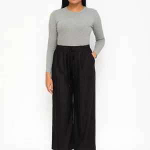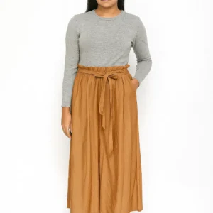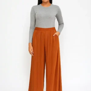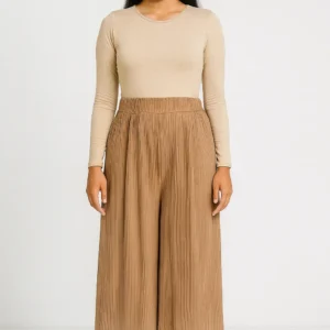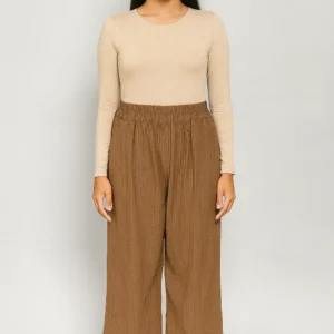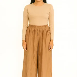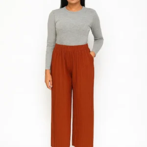 Celana Kulot Plisket Pinggang Karet Cokelat
